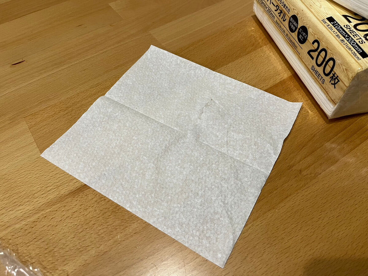 キッチンペーパーの1枚とは違い、1枚あたりの面積・厚さも大分小さい為に枚数がかなり多いので非常に長持ちなのも魅力の1つです。