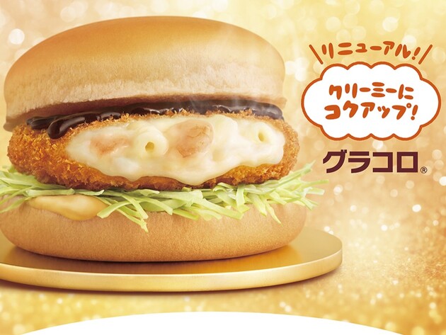 2007年からは名称を「グラタンコロッケバーガー」から「グラコロ」に変更、2016年からはたまごソースに卵黄が増量され、バンズにバターの香りが加わるなどさらに濃厚・リッチな味わいに生まれ変わっています。