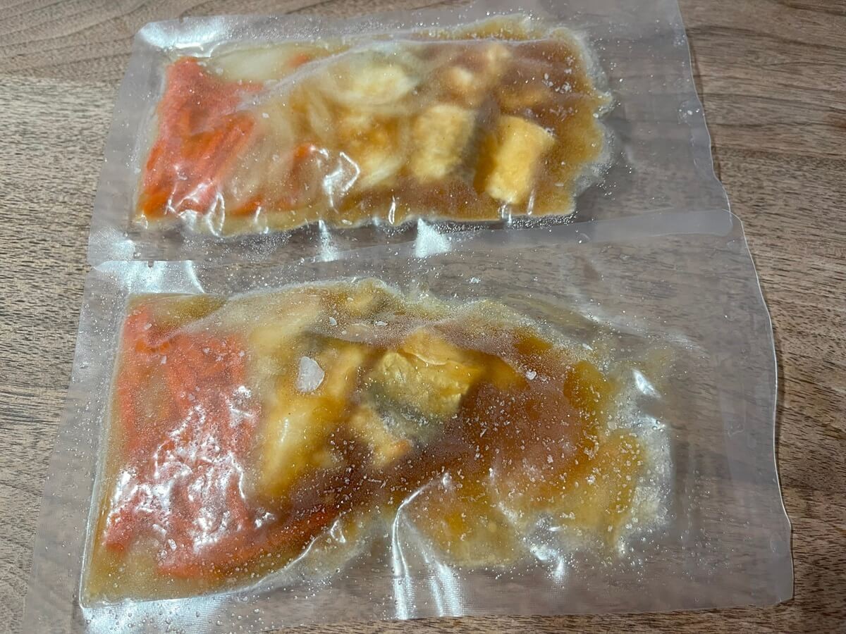 外袋を開けると、2匹入りが2パックで合計4匹入っており、表示通りに湯煎して温めて食べました。