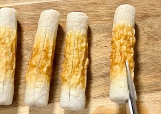 小麦粉と水を合わせて衣を作り、ちくわにまとわせます。