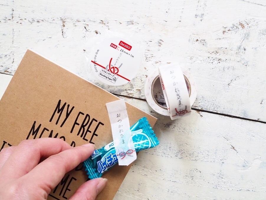 誰かにちょっとしたプチギフト、差し入れのお菓子を渡す時など、こちらのテープを貼っておけば手書きよりもお手軽。