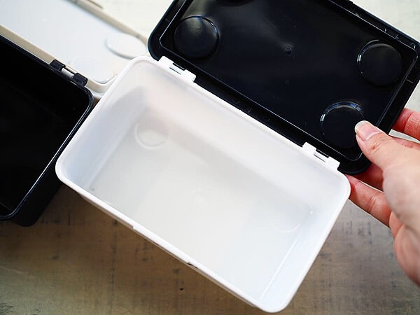 本体黒には白の蓋、本体白には黒の蓋がそれぞれ一体化しています。