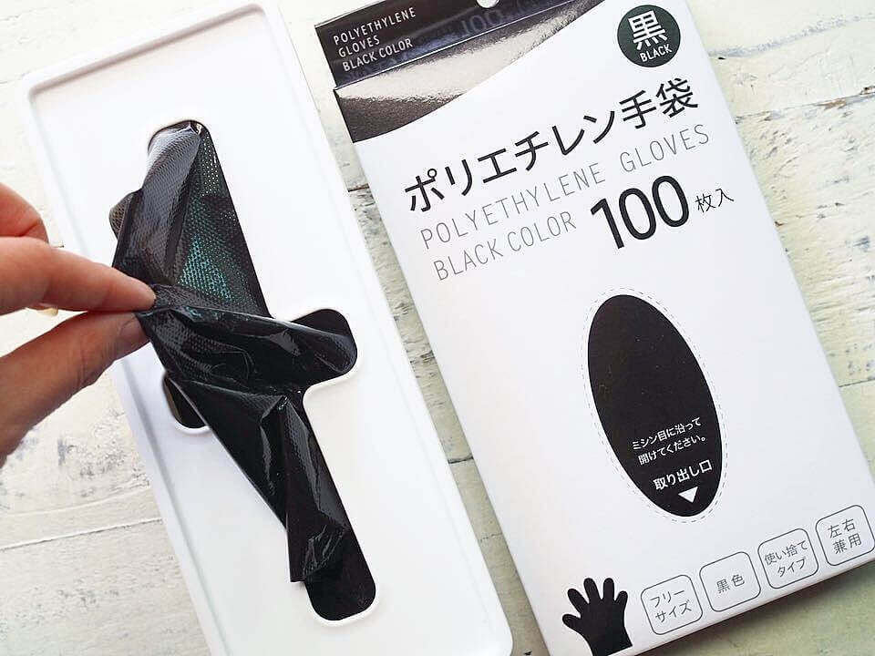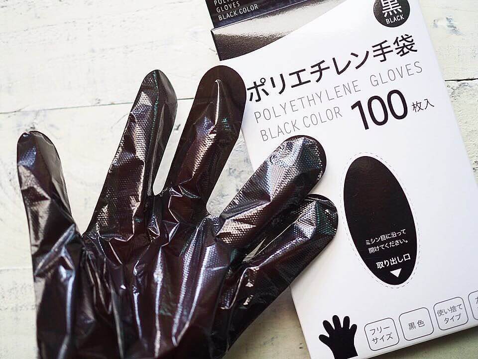 100円ショップ定番のビニールポリ手袋ですが、今までになかった「黒」バージョンが登場!