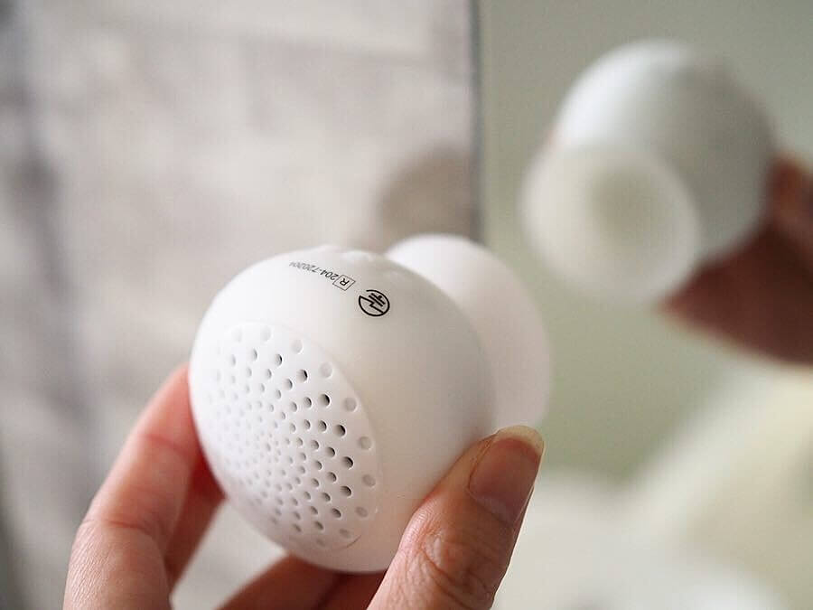 スピーカー部分が底面に。前から水がかかってもより安心感があります。 また、操作ボタンは前面に移動し押しやすさ&ビジュアルともにパワーアップ♪