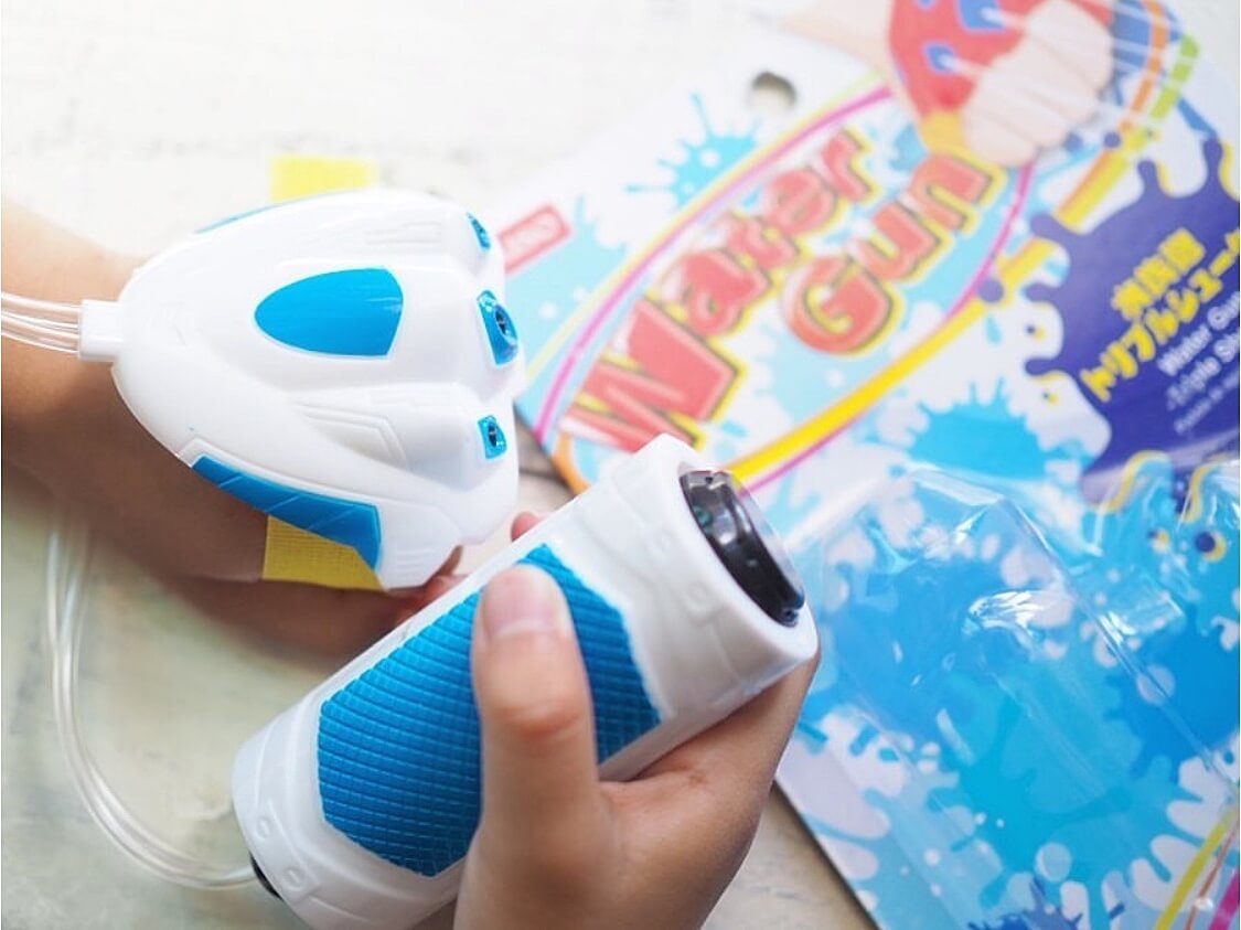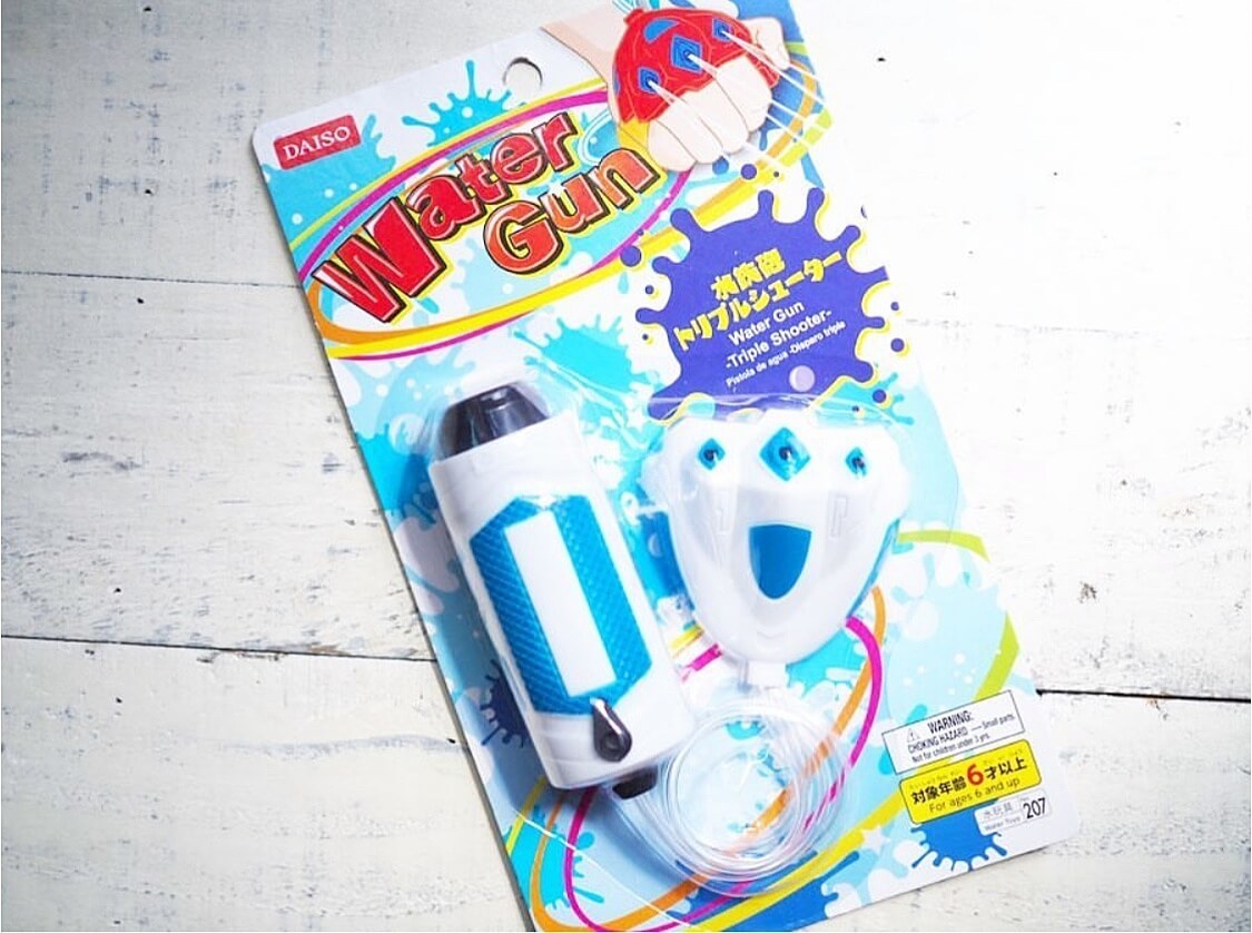 夏の水遊びに嬉しいダイソー「水鉄砲トリプルシューター」 は、100円(税抜) です。