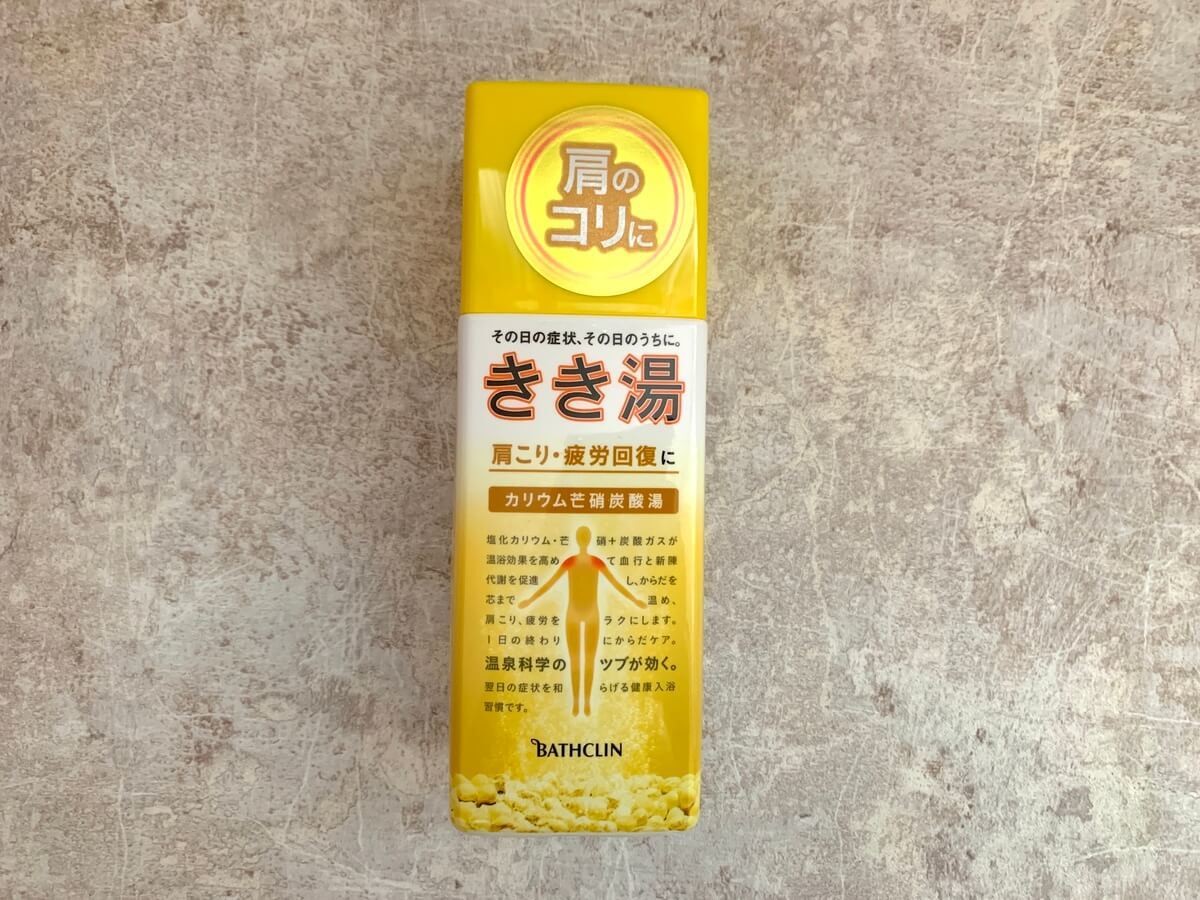 『きき湯』シリーズは、疲労・肩こりに良いとされる温泉成分である塩化カリウム・硫酸ナトリウムなどが含まれています。