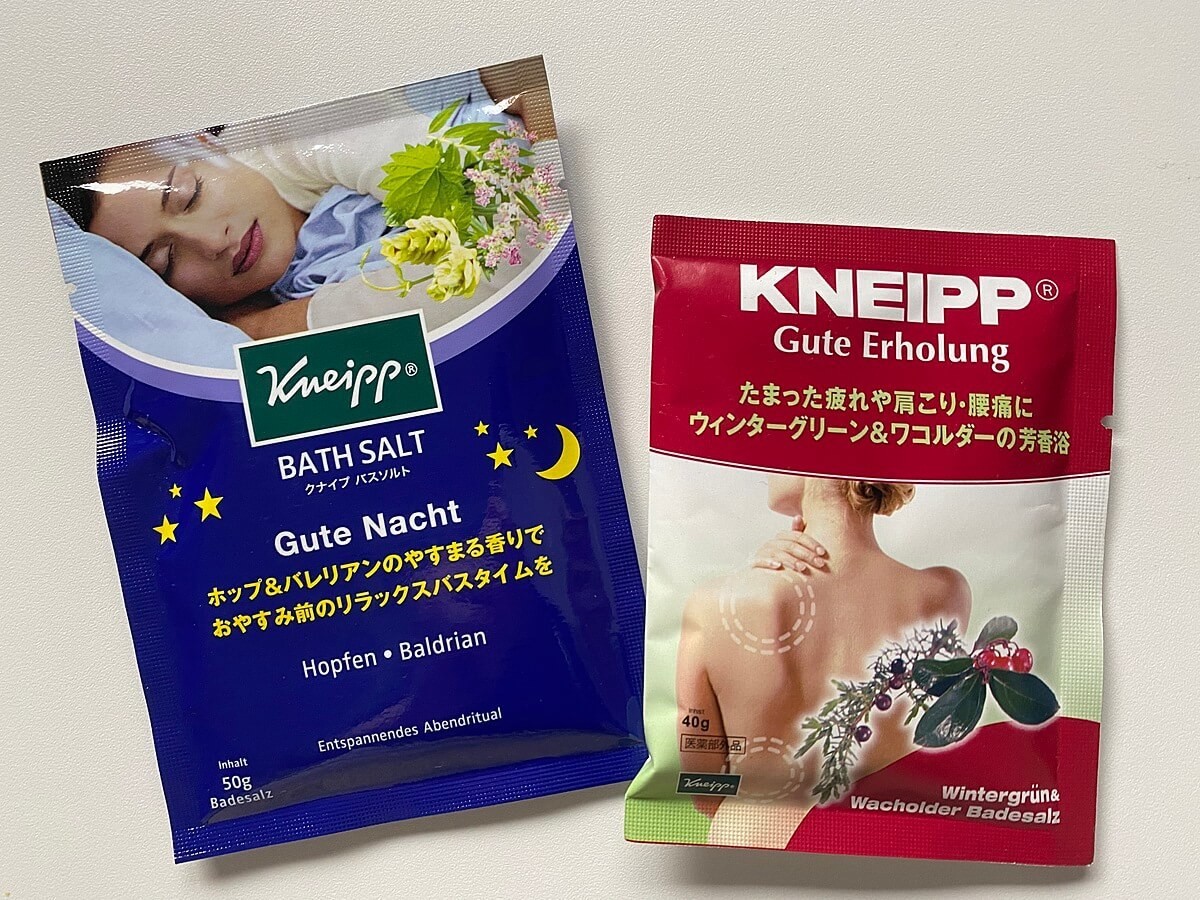 ドイツ生まれの「クナイプ」のバスソルトは入浴剤の定番中の定番。ドラッグストアや、コンビニで購入できます。