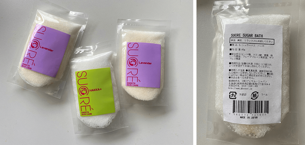 こちらはあまり東京ではお目にかからない、ABYSSAL JAPANの「シュクレ」というオーガニックスキンケアのバスシュガーです。肌に優しいてんさい糖を使った、日本初のシュガースクラブとして、知る人ぞ知るブランドかもしれません。