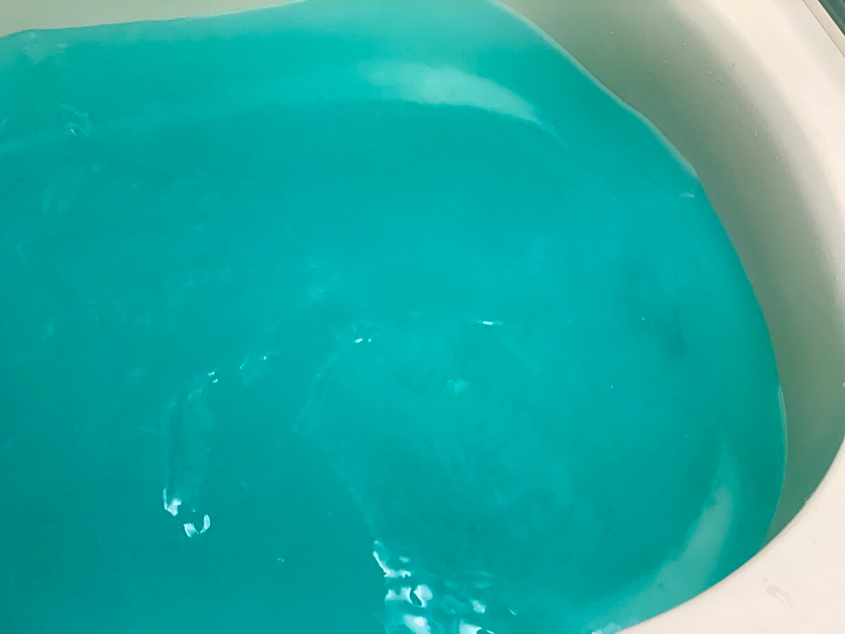 お風呂に入れると、ティファニーブルーのような、ミントグリーンの色が広がります。南国の海に来たかのような、さわやかな色。