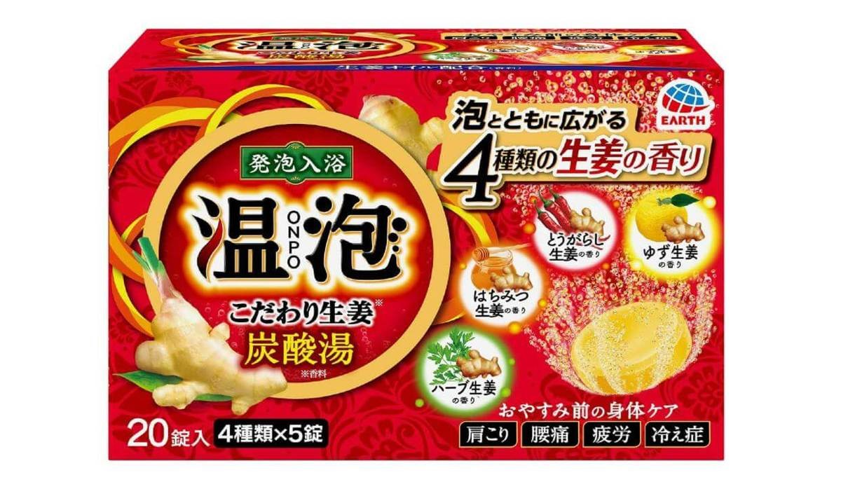 古くから日本人に親しまれてきた「生姜」の香りをブレンドし、4種の香りを詰め込んだ炭酸タイプの入浴剤。