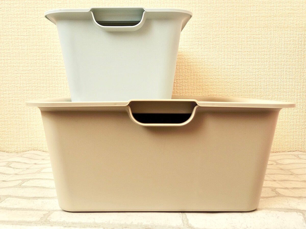 フタなしでオープンに収納できる他、フタを閉じれば積み重ねて使用することも可能です。ボックス同士も積み重ねできるので、使わないときもコンパクトにしまっておけます。