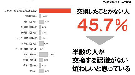 半数の人が、フィルターを交換しなければいけない意識を持っていない結果に。