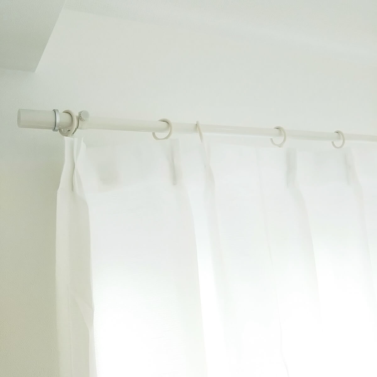 100円ショップのつっぱり棒に通して設置。穴を開けずに費用も抑えられました。