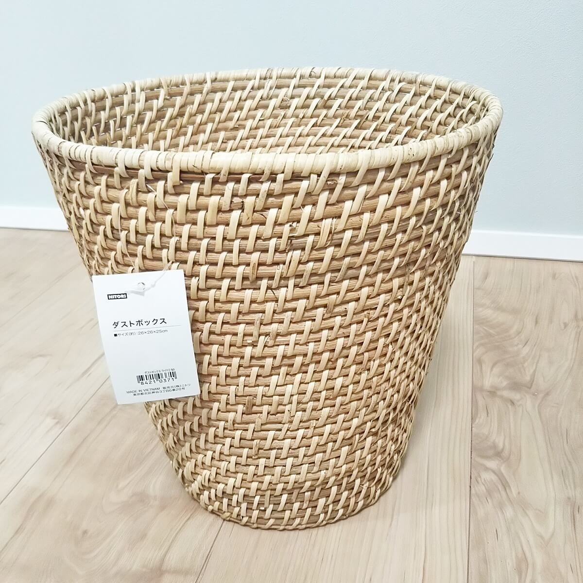 サイズもピッタリだし、我が家にはニトリのラタンバスケットをあちこちで使っているのでインテリアに統一感がでます。