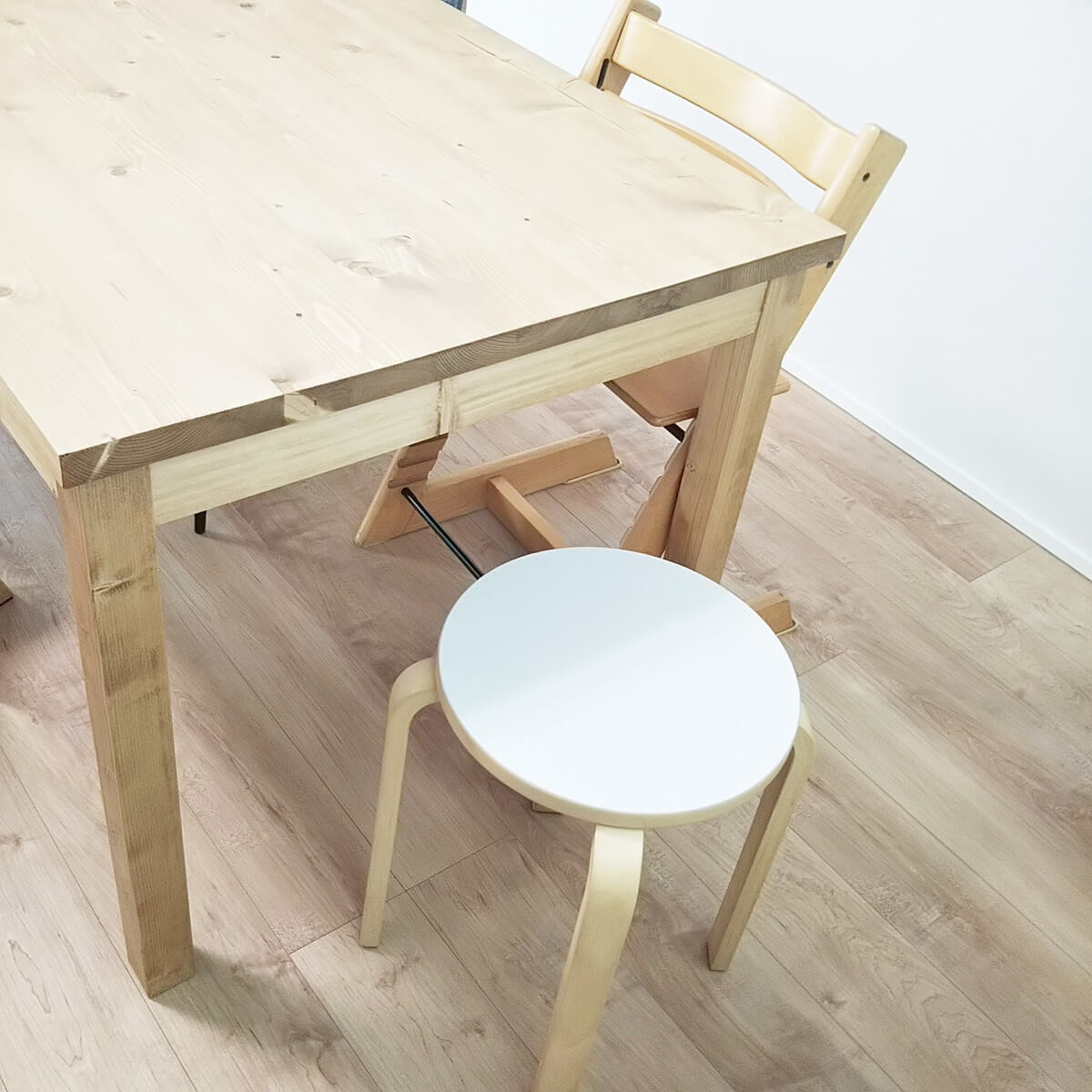我が家は来客用に丸いスツールを購入しました。1,287円(税別)