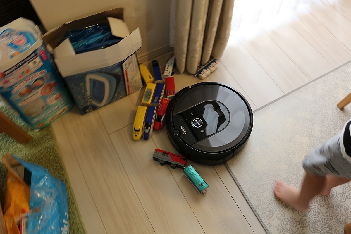 お掃除ロボットが登場してからは、お気に入りのおもちゃがロボットに吸い込まれないように慌ててお片づけをするようになりました!