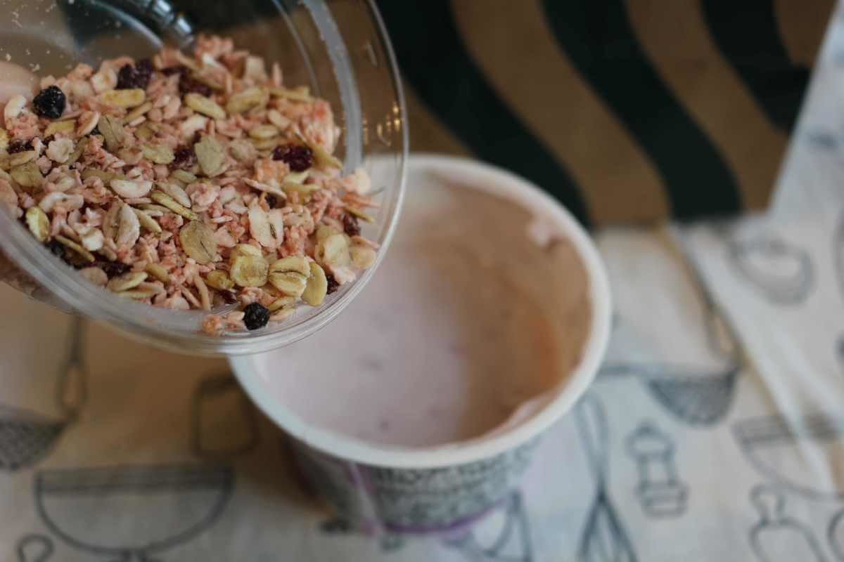 スタバオリジナルのヨーグルトかな……と期待しましたが、明治ブルガリアヨーグルトのプレーンに近いです(すっぱい笑)。