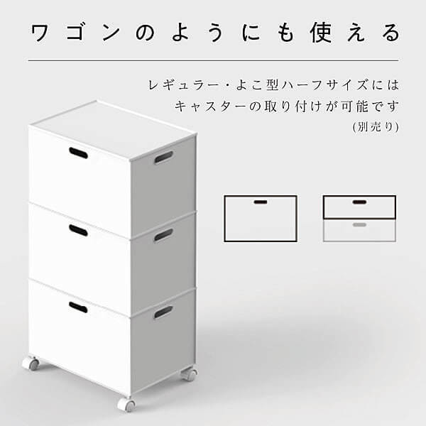 サイズによっては、別売りのキャスターを取り付けて、ワゴンのように使うこともできます。