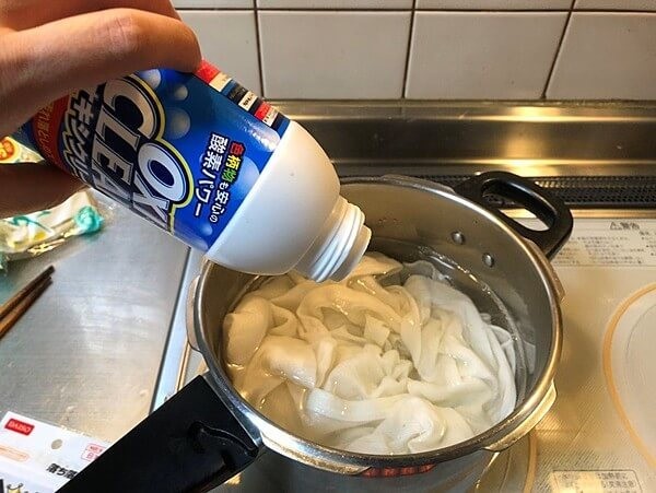 黄ばんだ衣類の洗浄はオキシクリーンで「煮洗い」