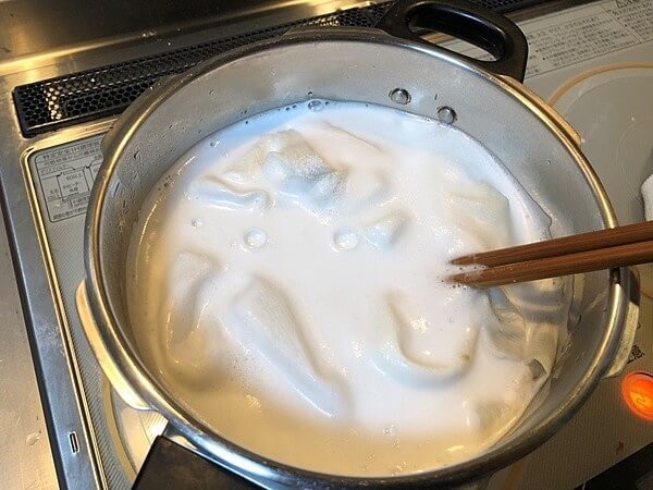 使用方法ですが、まずは黄ばんだ衣類などの洗浄には煮洗いします。