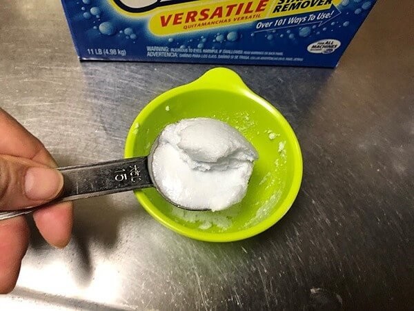 オキシクリーン大さじ1、重曹大さじ1、水大さじ1~1.5を混ぜるだけです。