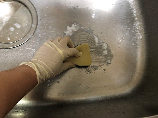 ほんの1~2分シンクにスポンジでなじませて磨きます。