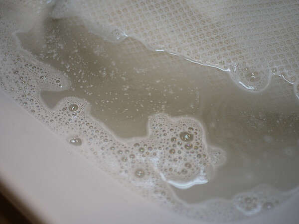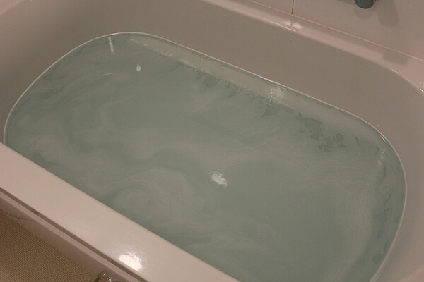 ”オキシ漬け”した浴槽のお湯を流した後、お湯はりをしてみると、白い泡が……。