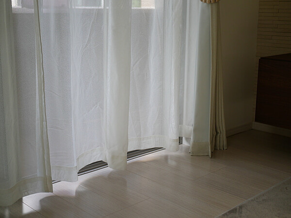 カーテンの重みでしわができなくなり、ピンとした状態でしっかり乾かすことができます。気持ちの良い天気の日は窓を開けて、寒い日は窓を閉めて暖房をつけて乾かしても大丈夫。