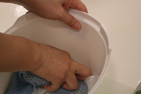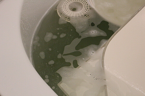 溶かしたオキシクリーン水を洗濯槽に注ぎ入れます。