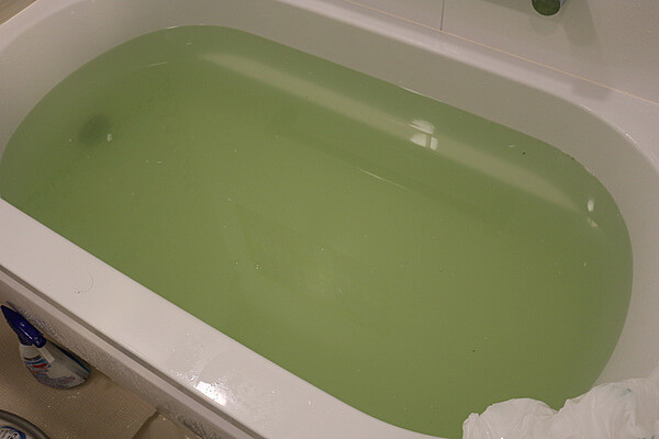 溶かしたオキシクリーンを浴槽に注ぎます。