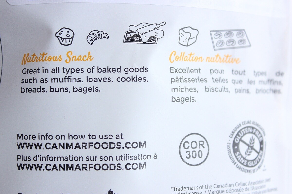 商品情報を得るためにシールをはがしてみると、色々な種類のパンやお菓子作りなどに向いていて、そして1日に15gから30g摂ると良いと書いてありましたよ。