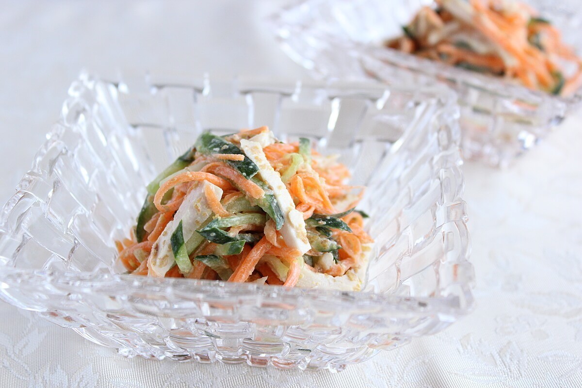 鶏むね肉とキュウリ、人参のサラダにIN