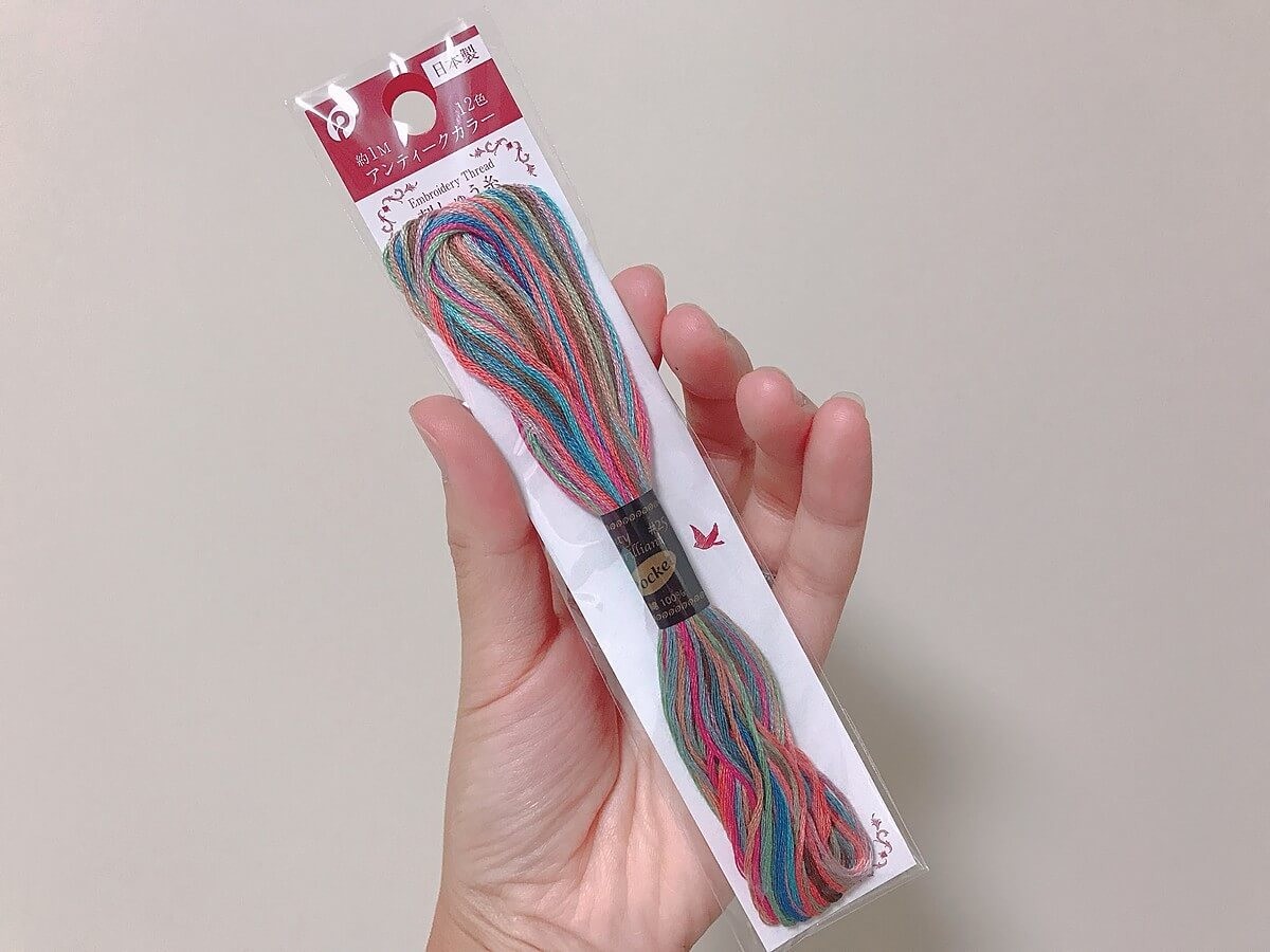 100均に行けば刺繍糸は一通りの色が揃っていて、中にはこんな感じで色んな色が少しずつMIXされたおしゃれな物もありました。