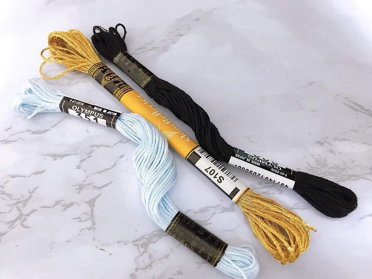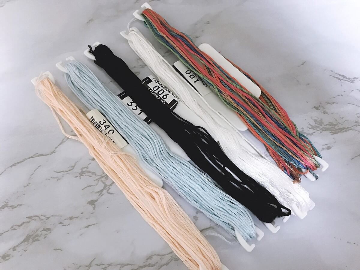 一色100円くらいで買えますし、100均の糸よりも布へ通す時の滑りがよく、糸も切れにくい印象です。本格的に刺繍を始めたい方は手芸店の物の方がいいかもしれませんね。