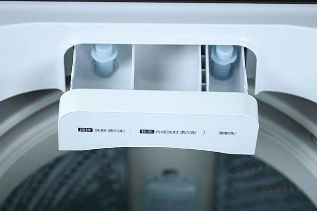 譚さん:さらに、洗濯槽内には、こんな工夫も加えました。 それが、洗剤・漂白剤・柔軟剤の注ぎ口をひとつのケースにまとめたこと。入れ間違いもしにくいし、お手入れもラクだと思います。