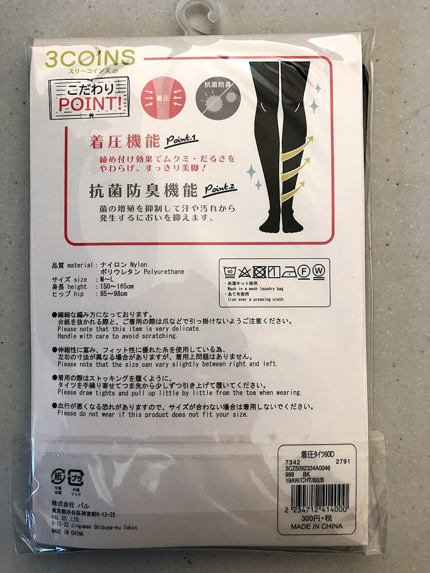 スリーコインズ「着圧タイツ60DLL(黒)」1本300円(税別)