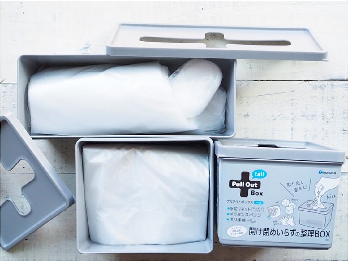 セリアの大人気商品。キッチンで役立つ開け閉めいらずの整理ボックス「プルアウトボックス」にモノトーン好きさん待望のグレーカラーが登場!