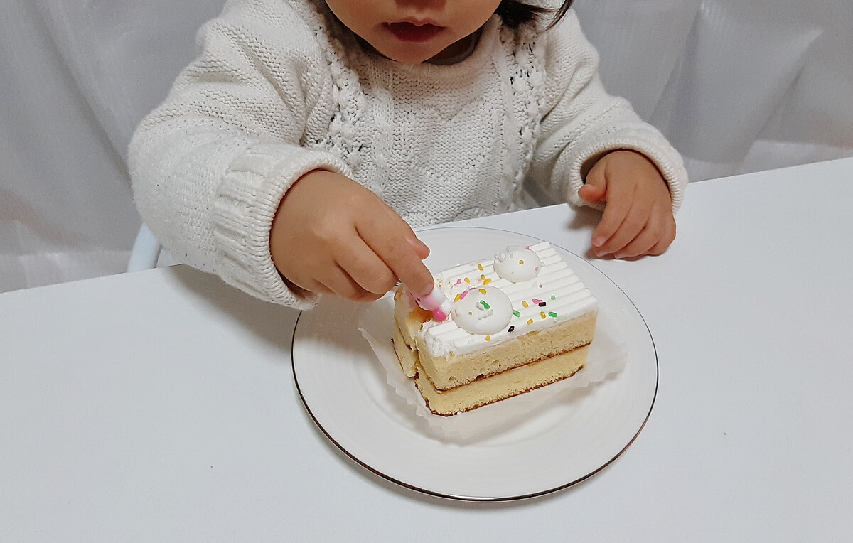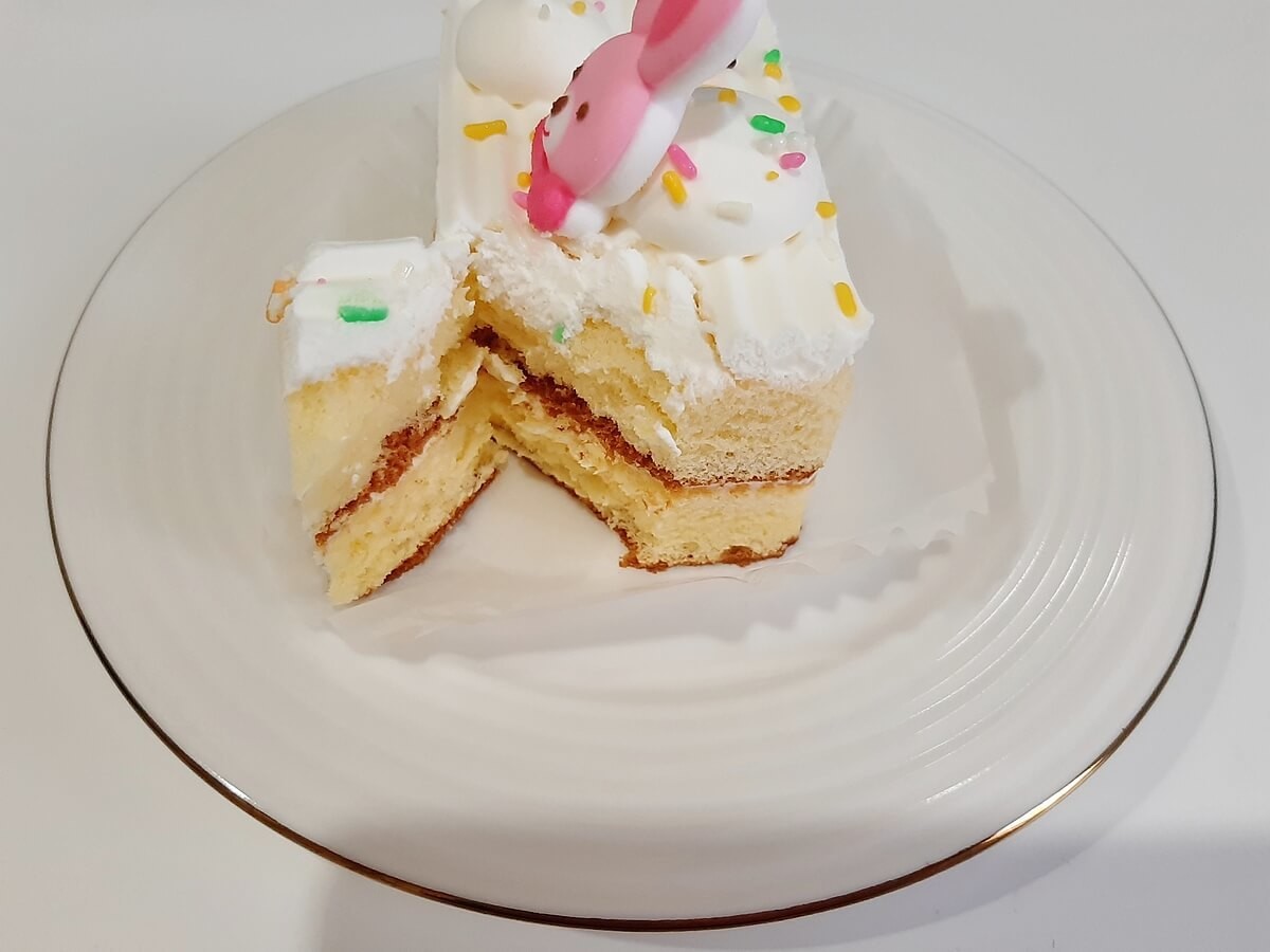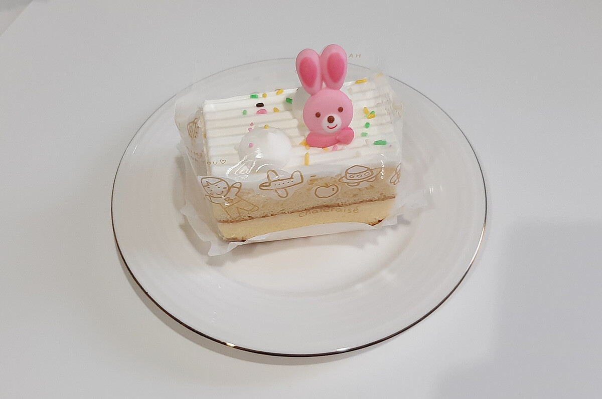側面までごってごてにクリームが付いていないので小さい子どもでも食べやすく、ケーキデビューにもぴったりです。甘さも程よく、娘はウサギを嬉しそうに見ながらペロリと完食しました♪