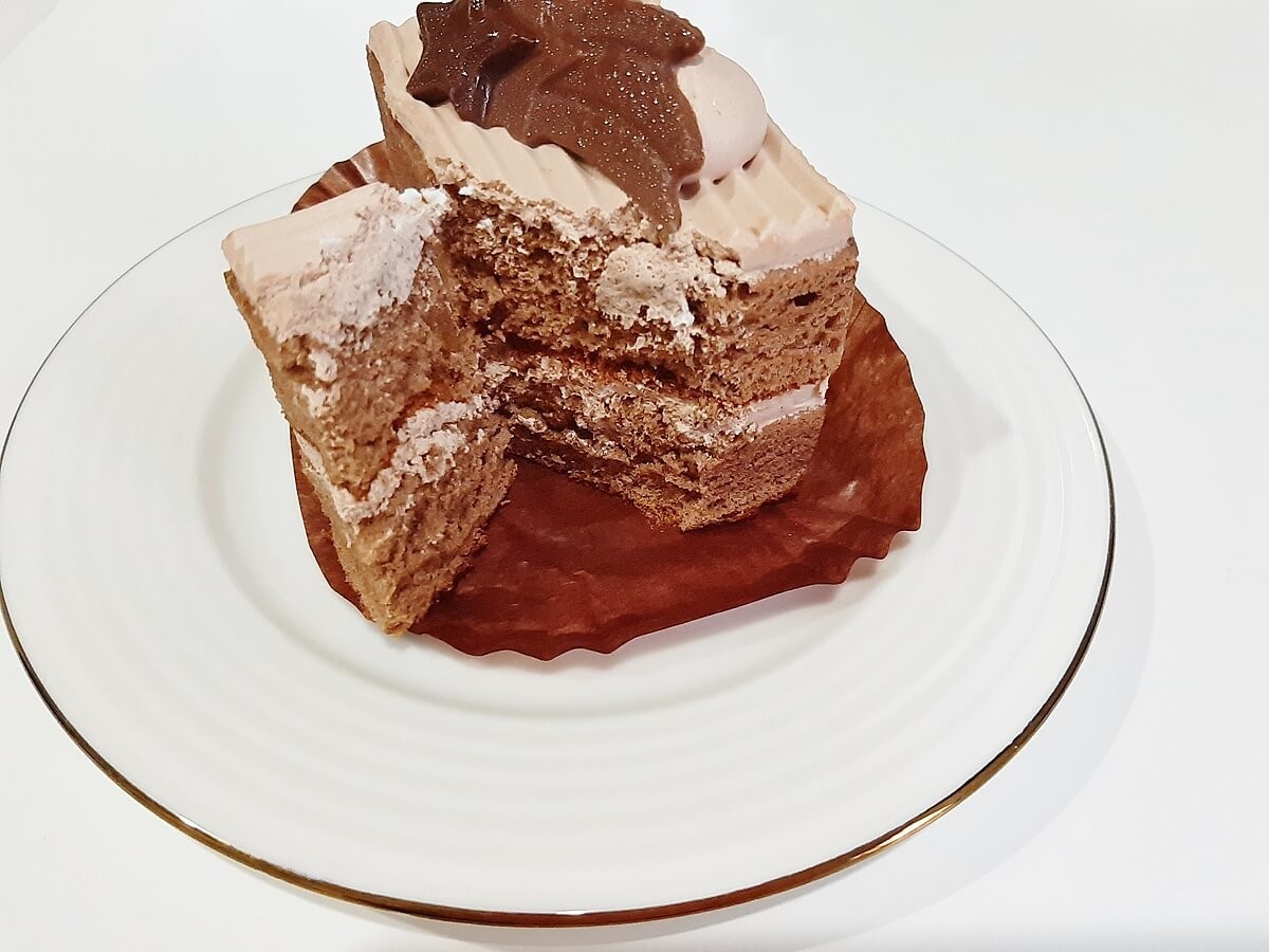 ココア味のふわふわスポンジとチョコクリームのシンプルなケーキです。流れ星のチョコレートがアクセントでかわいいですよね。