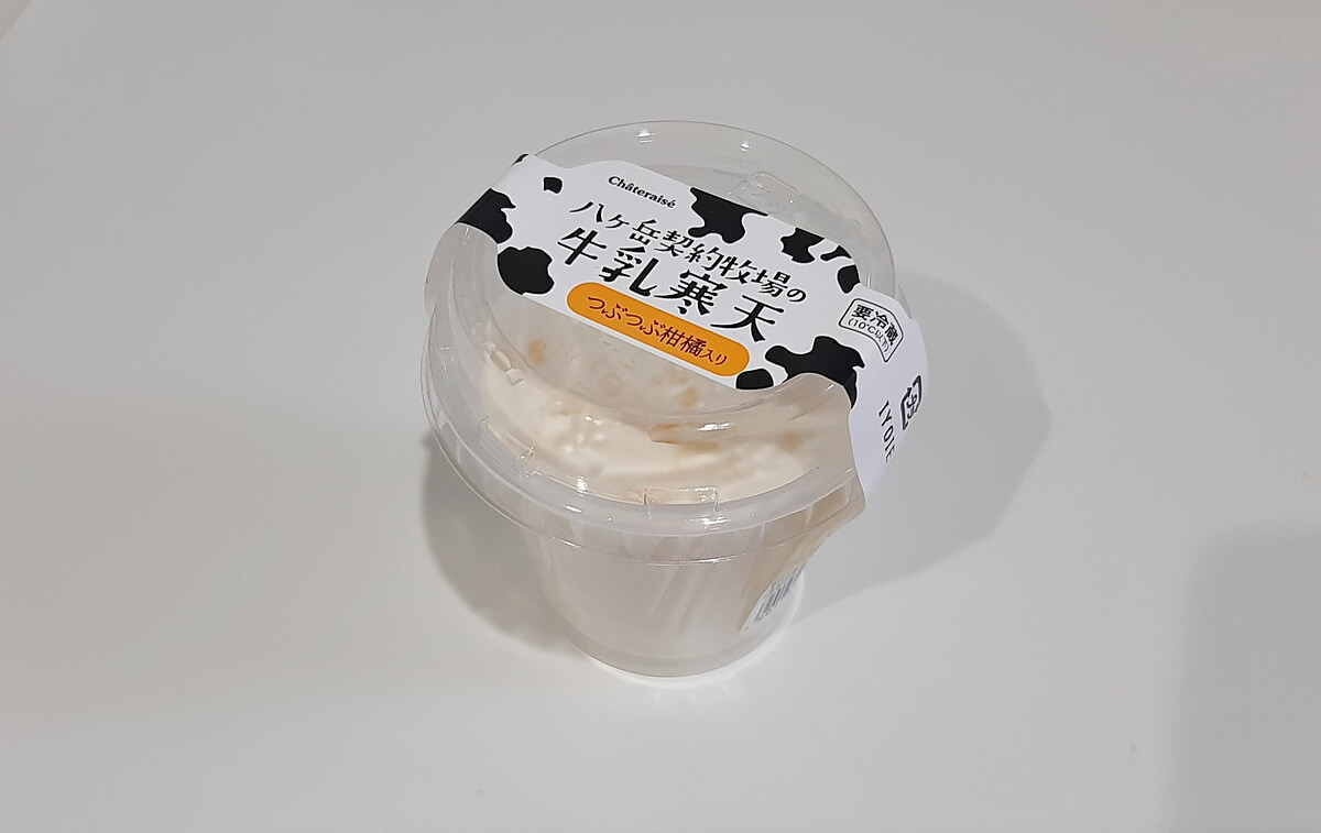 - 八ヶ岳契約牧場の牛乳寒天 つぶつぶ柑橘入り 120円(税抜)