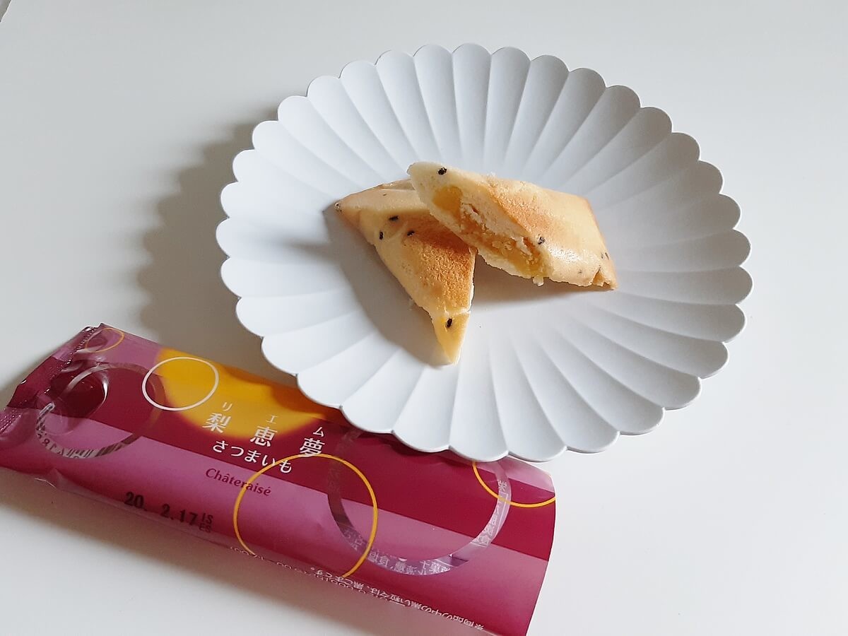 隠れ人気のお菓子は食べやすいサイズ感「梨恵夢」