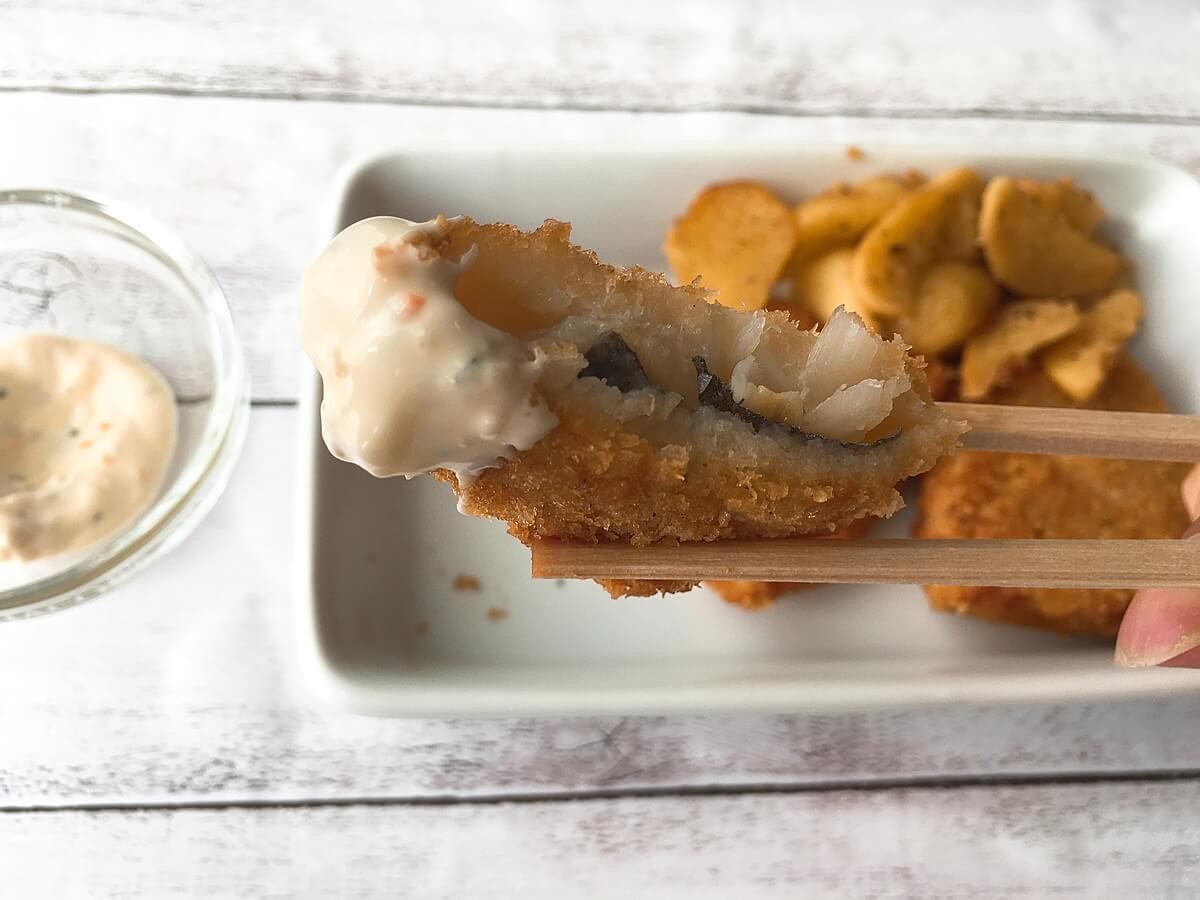 タルタルソースと一緒に食べると、まさに「フィッシュ&チップス」。