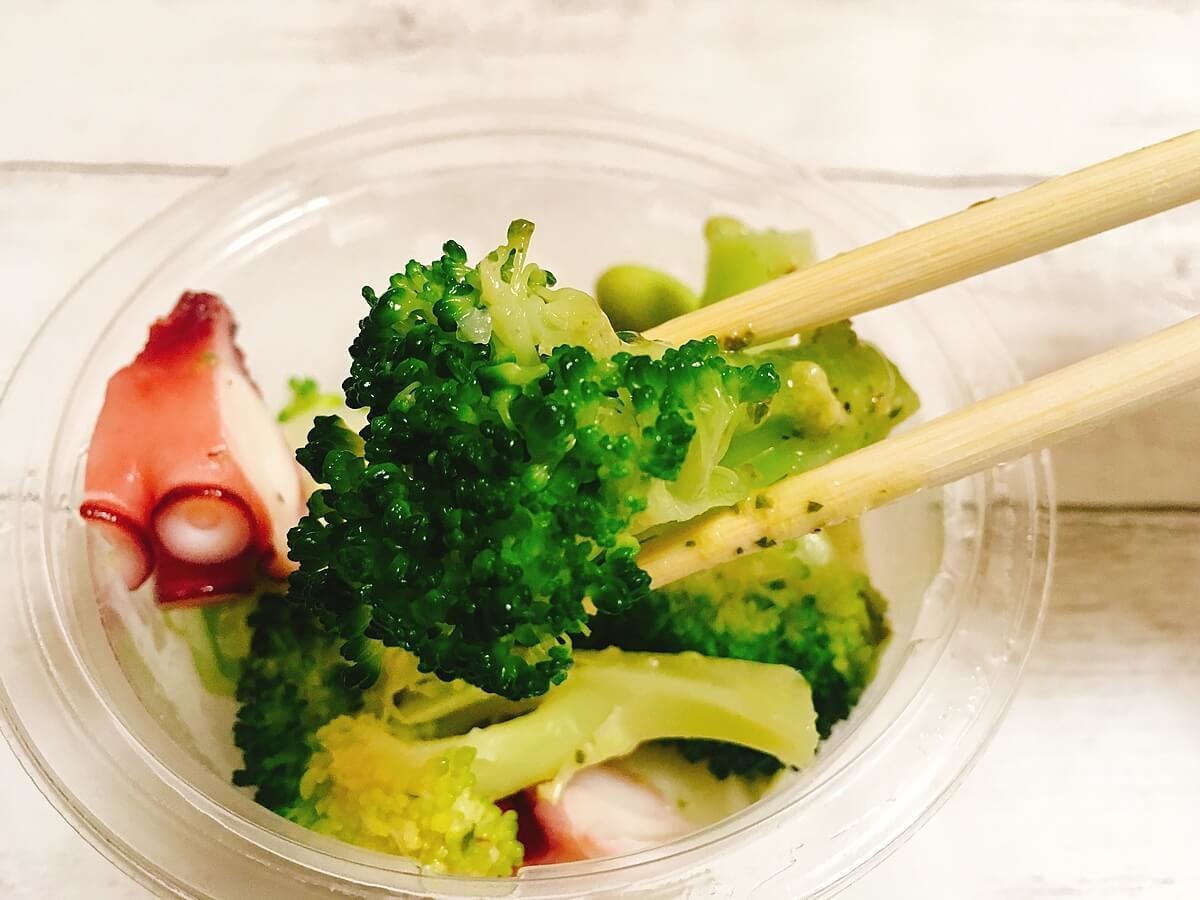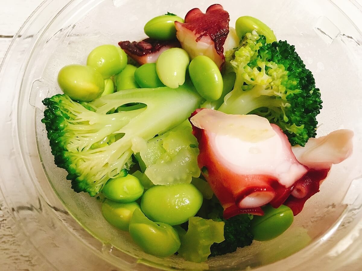 たこ、ブロッコリーなどの緑野菜、じゃがいもを組み合わせたお惣菜です。