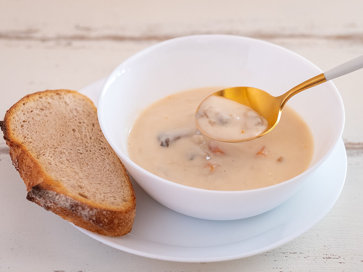 濃厚クリーミーでとてもおいしく、あさりのうまみもしっかりと感じます。パンと一緒にいただくと、さらにおいしさ倍増。