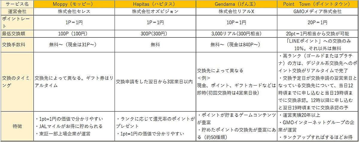 さてここからは、筆者が推薦するポイントサイトとしてMoppy(モッピー)やHapitas(ハピタス)、Gendama(げん玉)、Point Town(ポイントタウン)の概要と、タイプにお勧めするポイントサイトをご紹介したいと思います。