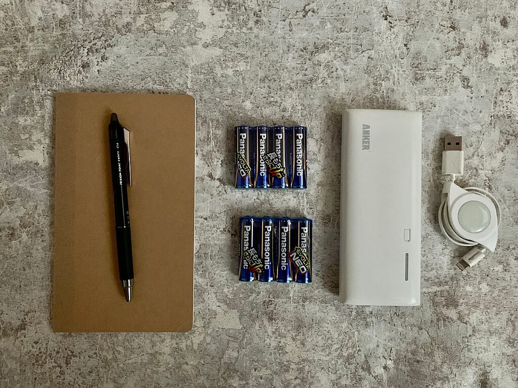 電池式ラジオは停電しても情報を得ることができます。また電池式の道具の電池のサイズは同じにしておくと使いまわしができて便利です(単3がおすすめ)。