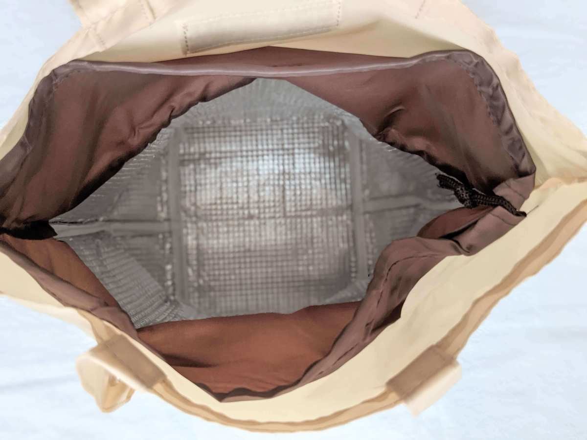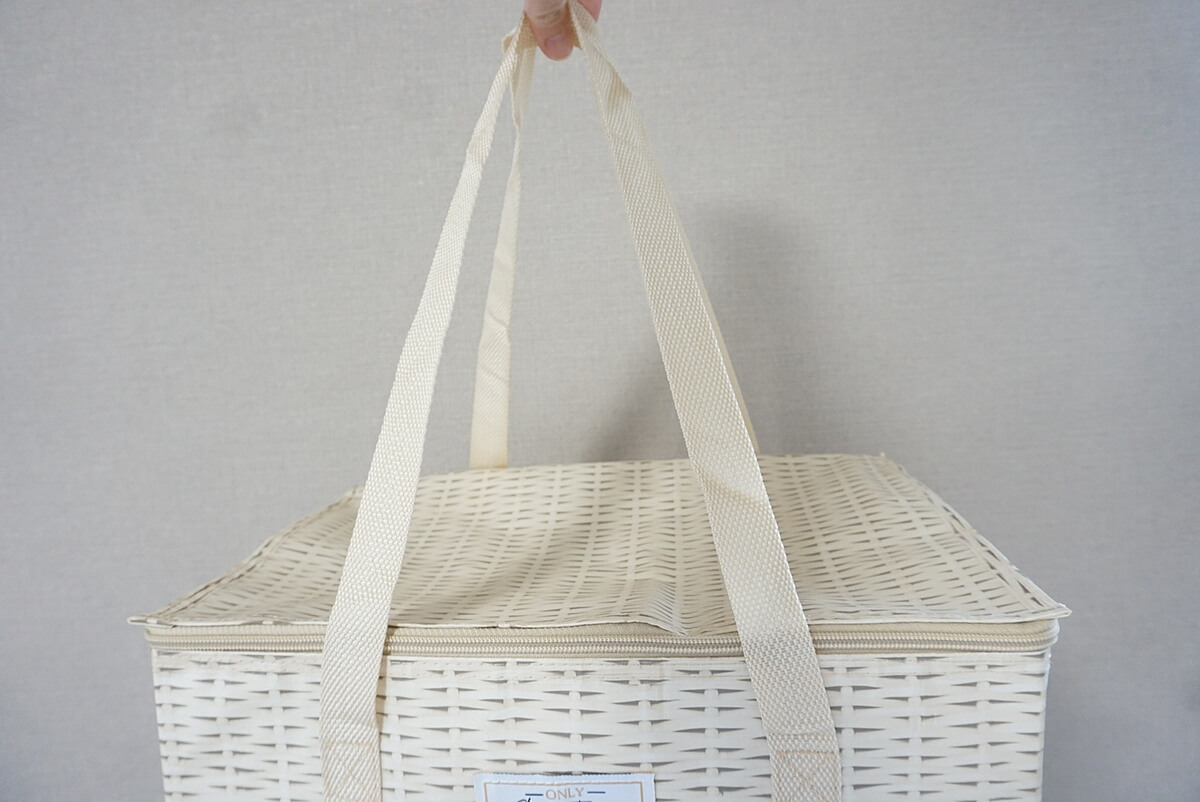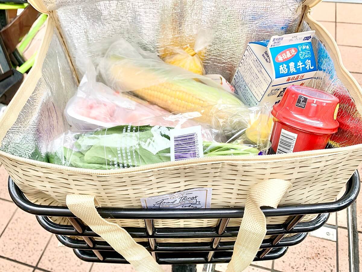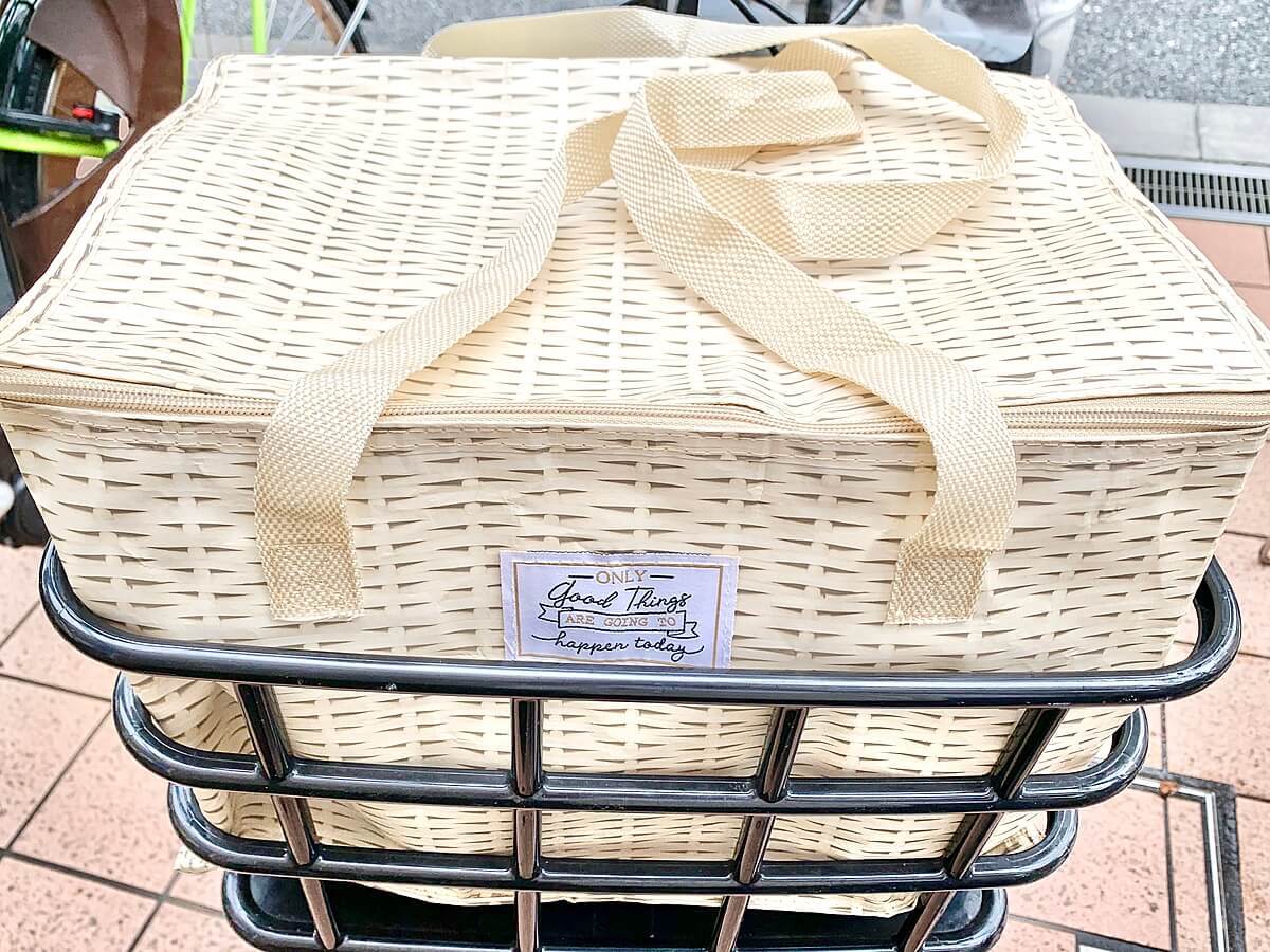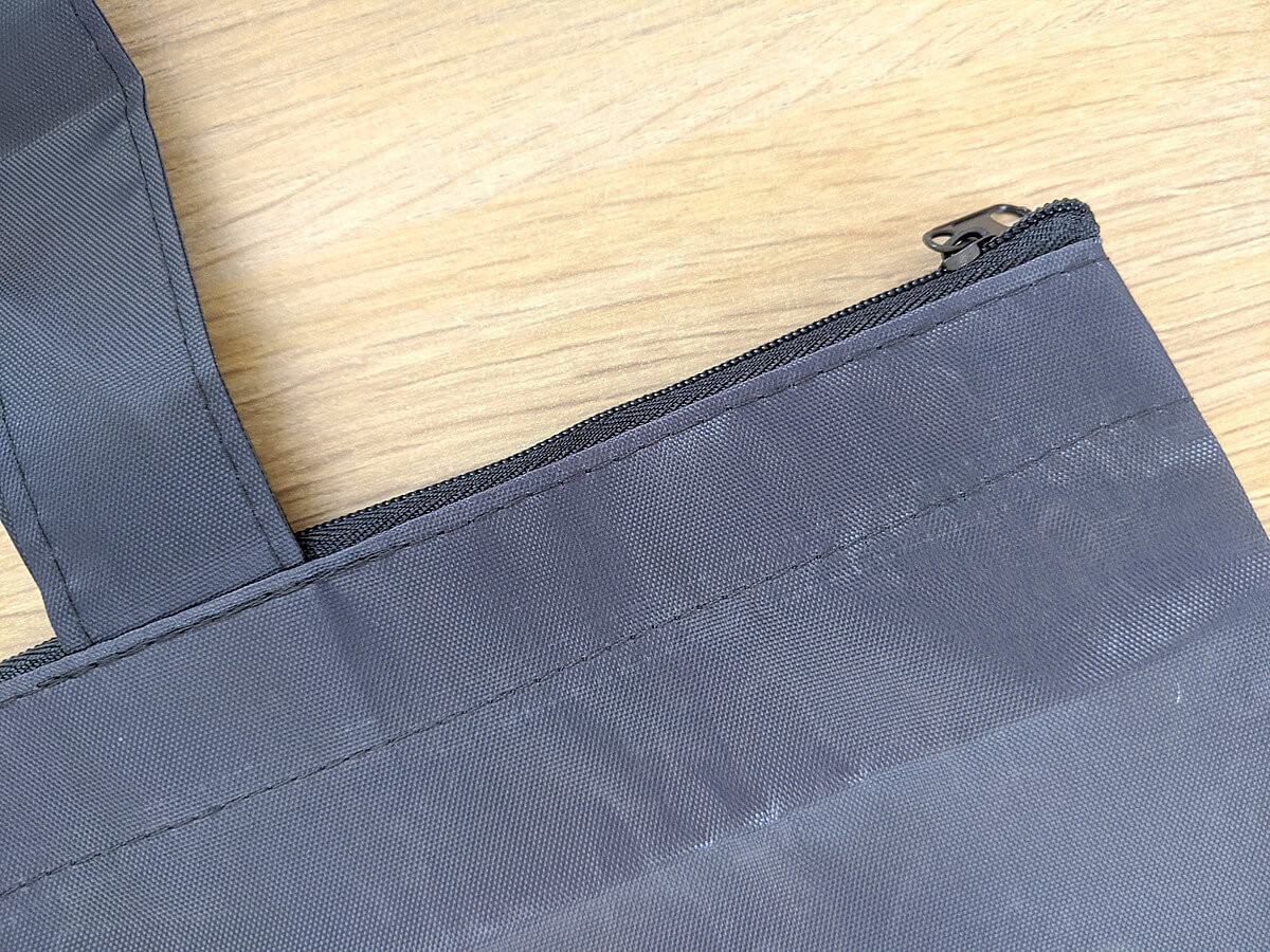 こちらのエコバッグの開口部にはファスナーが縫い付けられているため、冷気を逃すこともありません。中に入れた食料品もきちんと仕舞い込めるので、自転車で不安定な路面を移動する時でも安心して持ち帰ることができますよ。