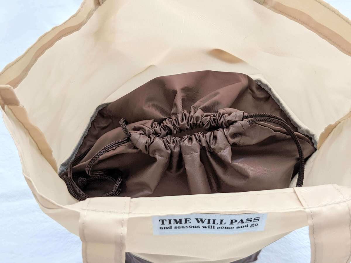 - 無印良品「絞るだけで包めるポケッタブルバッグ」990円(税込)