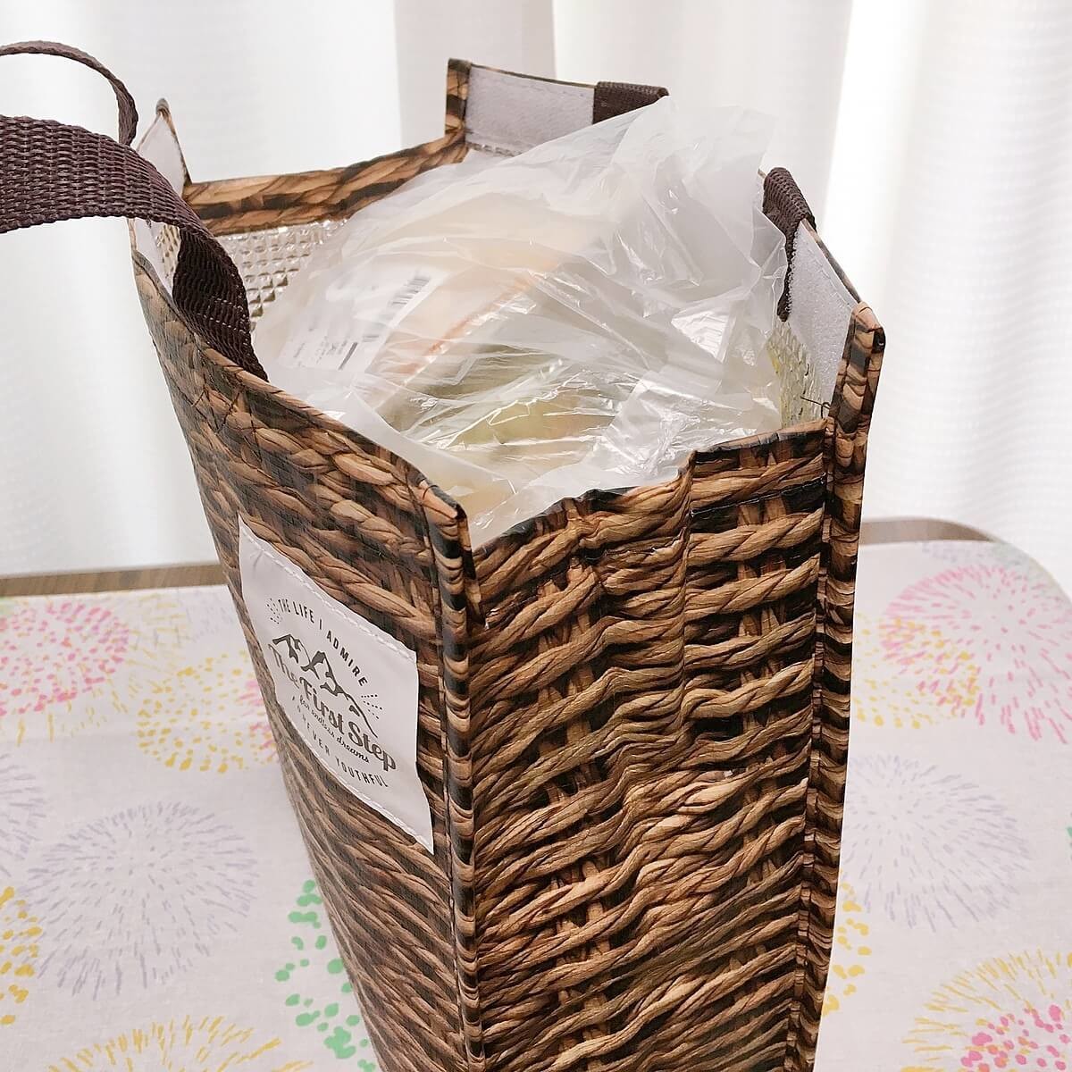バッグ自体厚みがあって丈夫ですし、スーパーのかごにも合うジャストサイズなので、袋詰めもしやすい!スーパーによっては、カゴにセッティングすれば店員さんが袋詰めしてくれるので、バッグに入れる時間も節約できて鮮度がより保てるメリットもあります♪