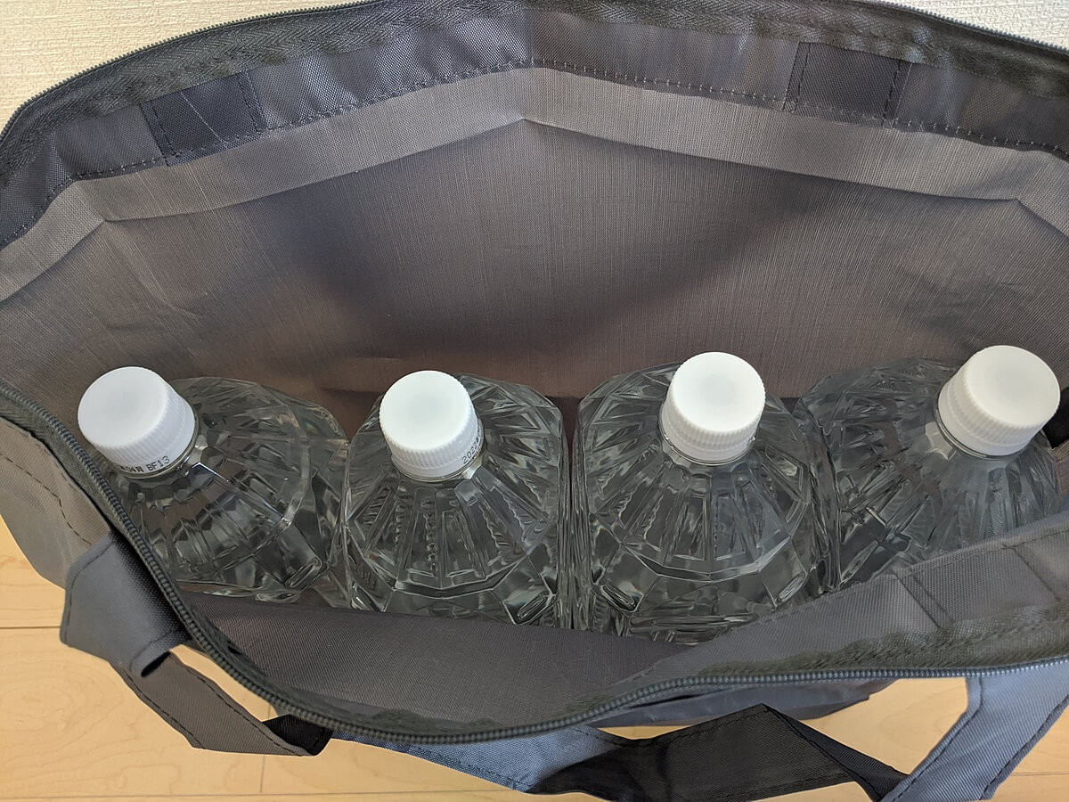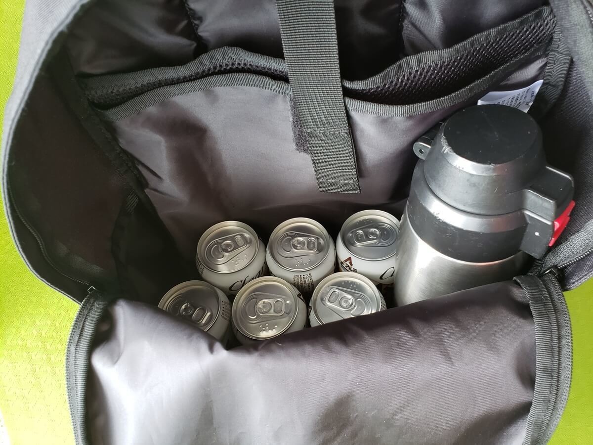 こちらは350㏄の缶6本と1リットルの水筒もすっぽり入り、それでも余裕があるので取り出しも簡単。